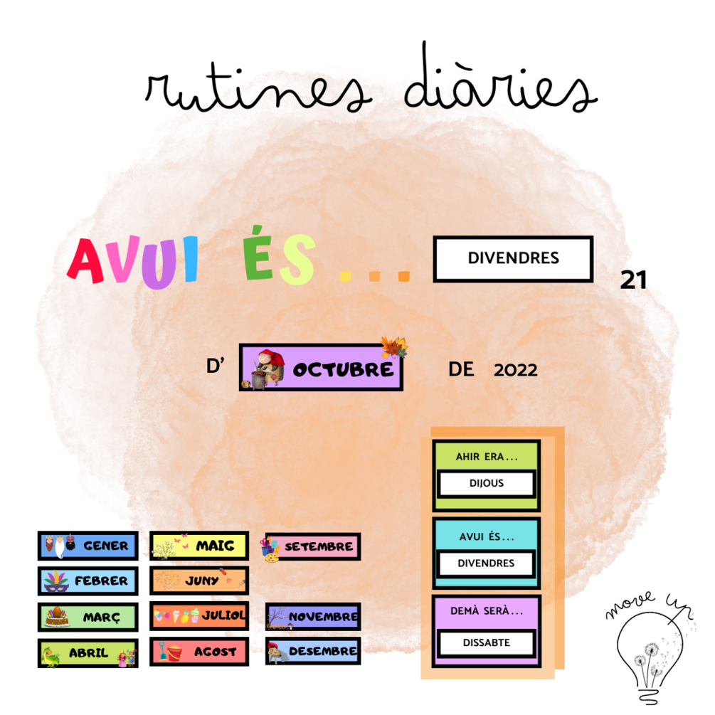 Material per posar a la classe i poder treballar les rutines diàries. Dies de la setmana, mesos de l'any, el pas del temps...